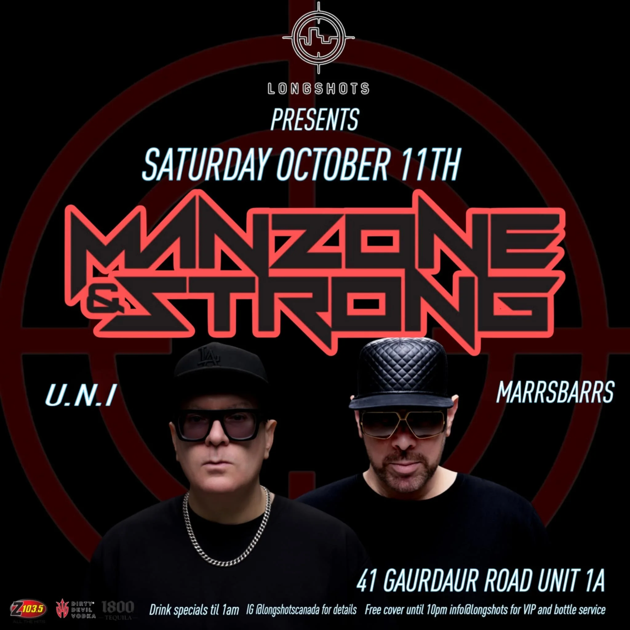 Manzone & Strong — Toronto legends known for dominating the House scene year after year, earning multiple “Best House DJs” awards and hosting the iconic Z103.5 Connected Broadcast. Their signature sound and world-class energy always take the night to another level.